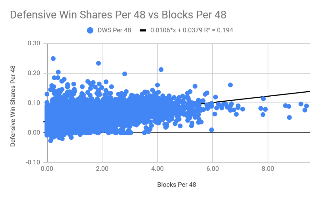 6.1 Defensive Win Shares Per 48 vs Blocks Per 48